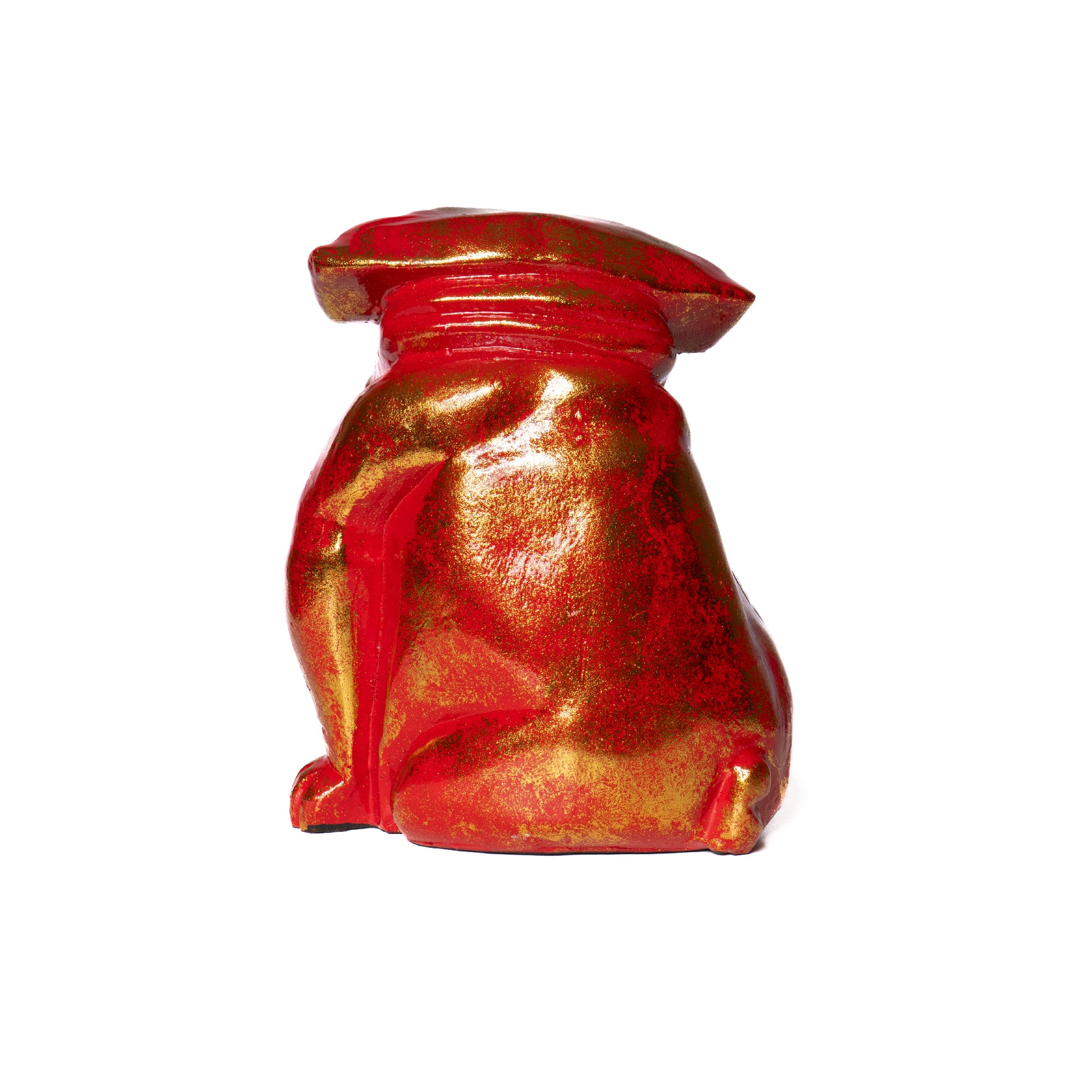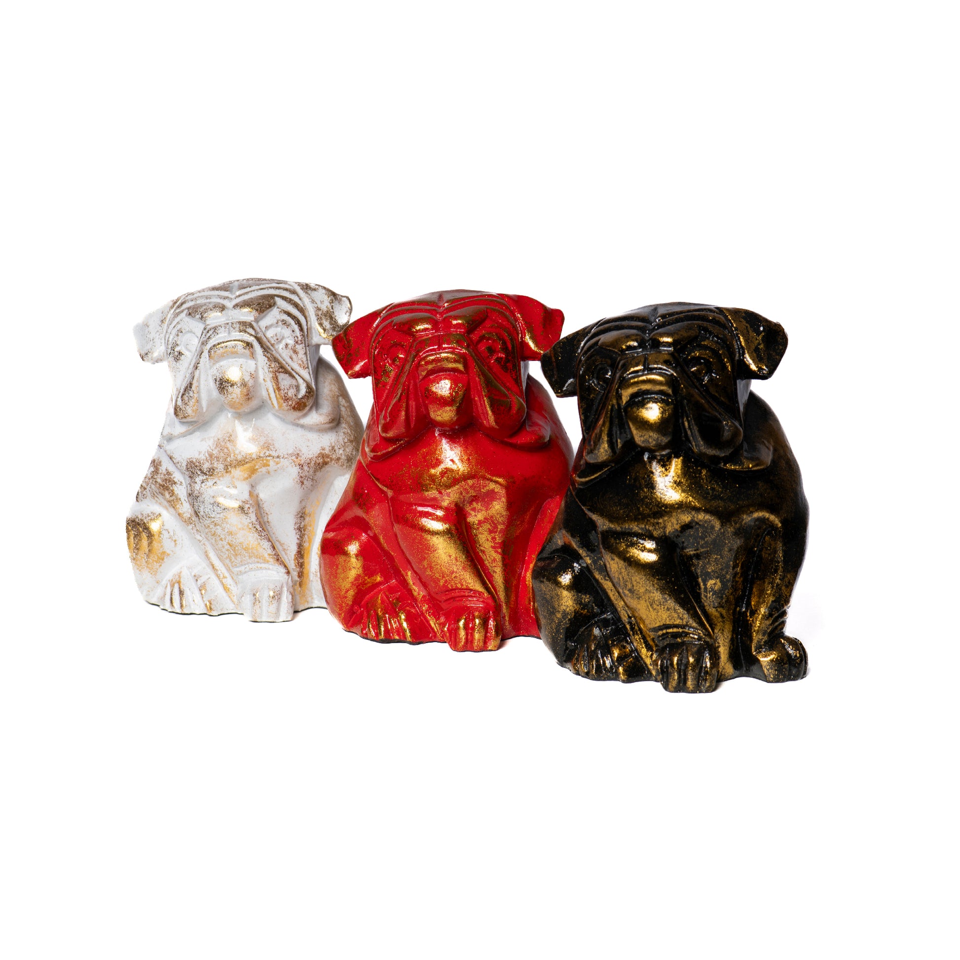 Statuetta in resina a forma di bulldog con sfumature dorate che aggiungono un effetto metallico brillante, donando alla statuetta un aspetto lussuoso e moderno.