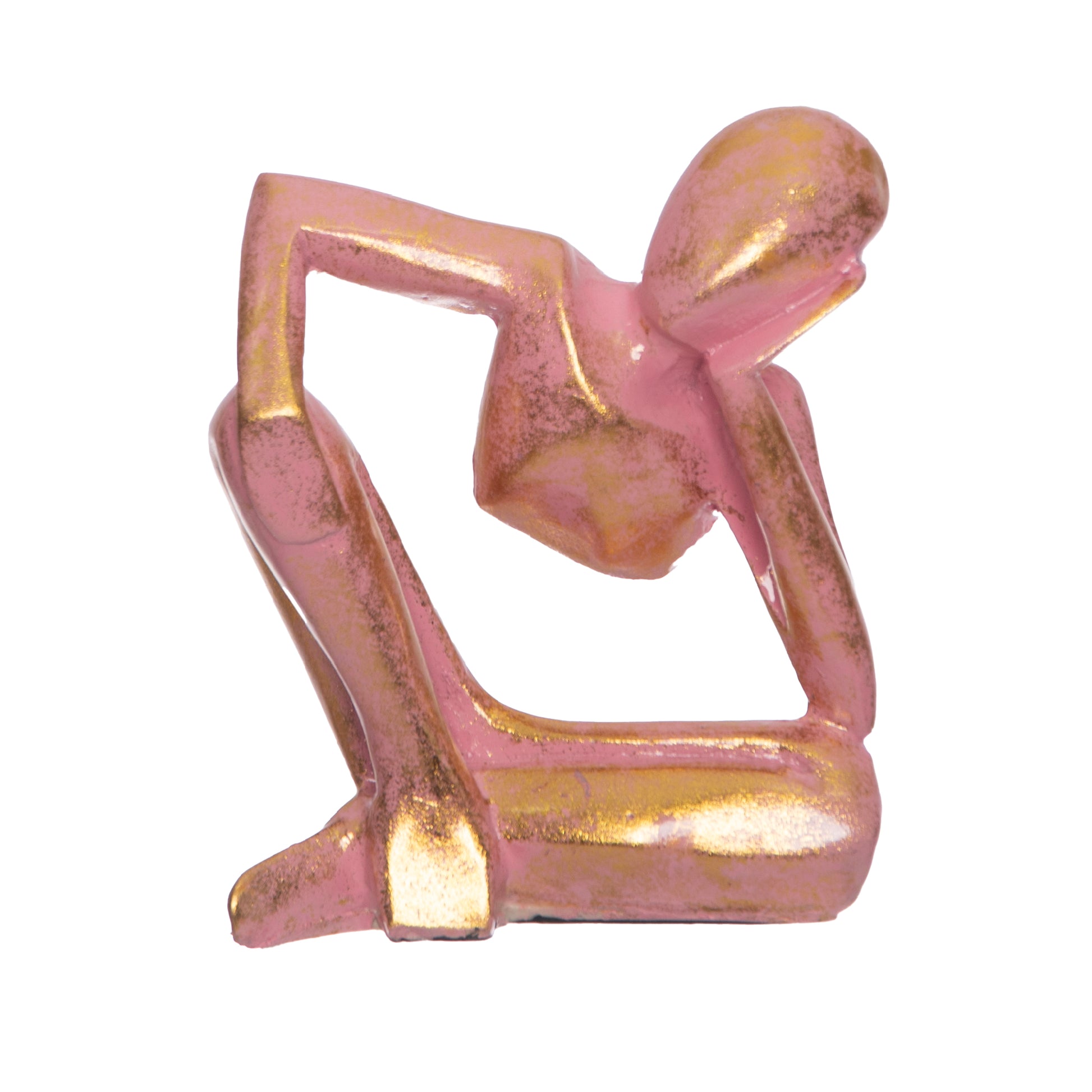 Statua stilizzata di donna dal design essenziale. La figura slanciata appoggia delicatamente la testa sulla mano in un gesto contemplativo. Il volto appena accennato lascia spazio all’interpretazione.