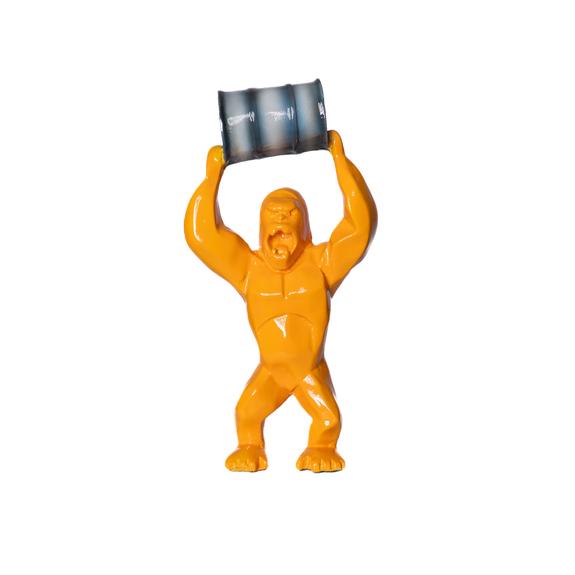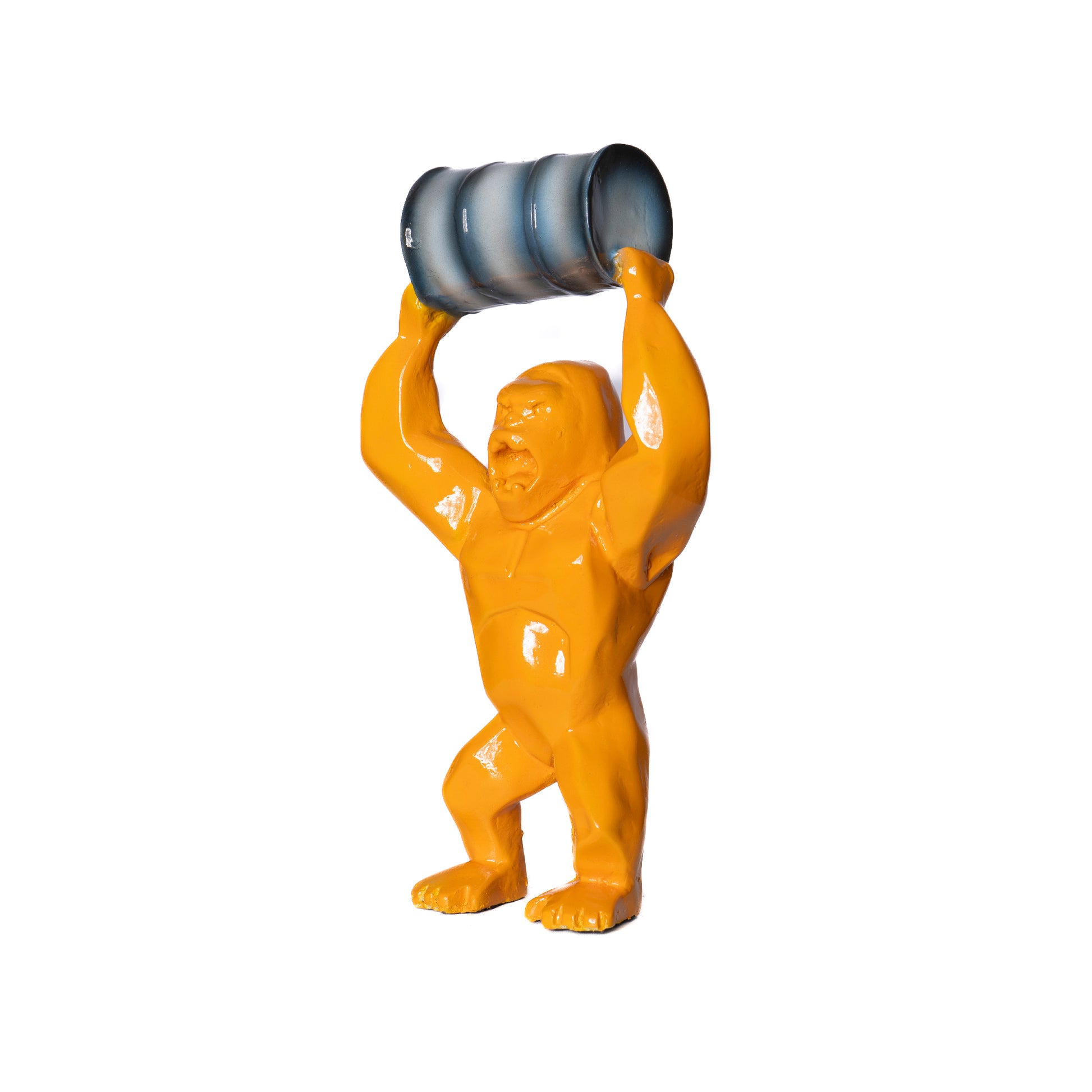 Statuetta a forma di mini King Kong in resina monocolore con un barile alzato. Aggiungi un tocco di avventura ai tuoi interni con questi dettagliati personaggi d'arte.