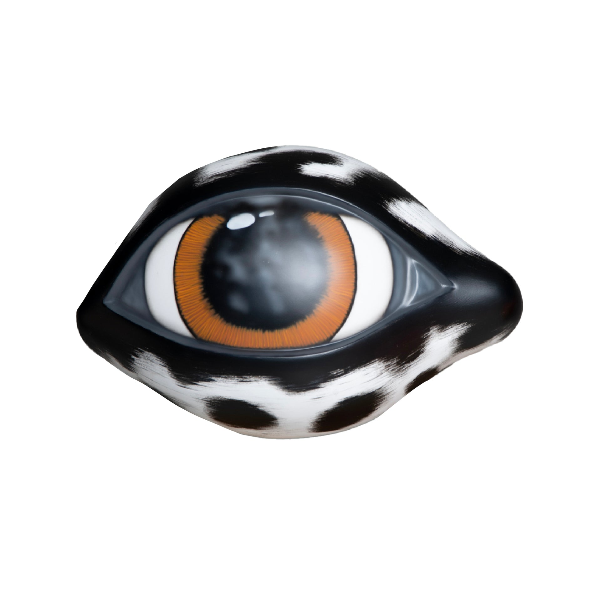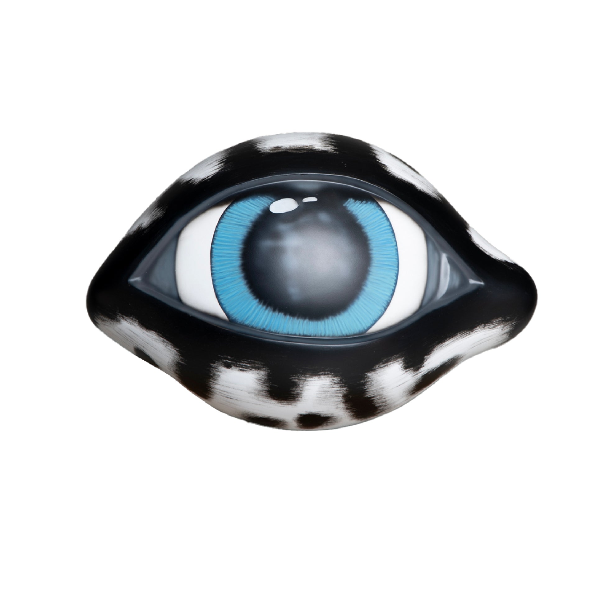 Scultura in resina che cattura l'intensità e la profondità di un occhio. La superficie lucida e levigata dell'occhio riflette la luce in modo unico, creando un effetto di profondità che sembra quasi dare vita alla figura.