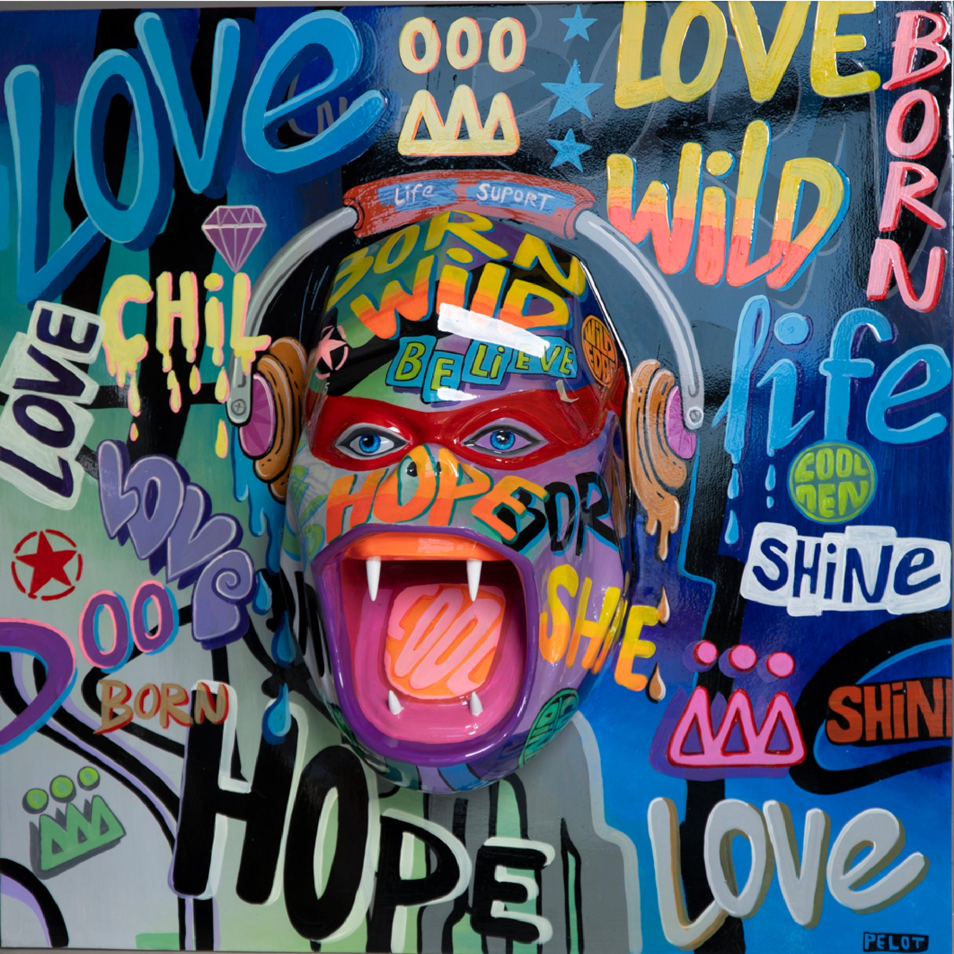 L’urlo del pop è un quadro audace e dinamico che cattura l'essenza di King Kong in stile pop art. La sua testa emerge dalla tela con dettagli scolpiti, dando profondità e imponenza all'opera. I toni sono accesi e contrastanti, tipici della pop art, con sfumature esplosive che enfatizzano l'energia del soggetto.