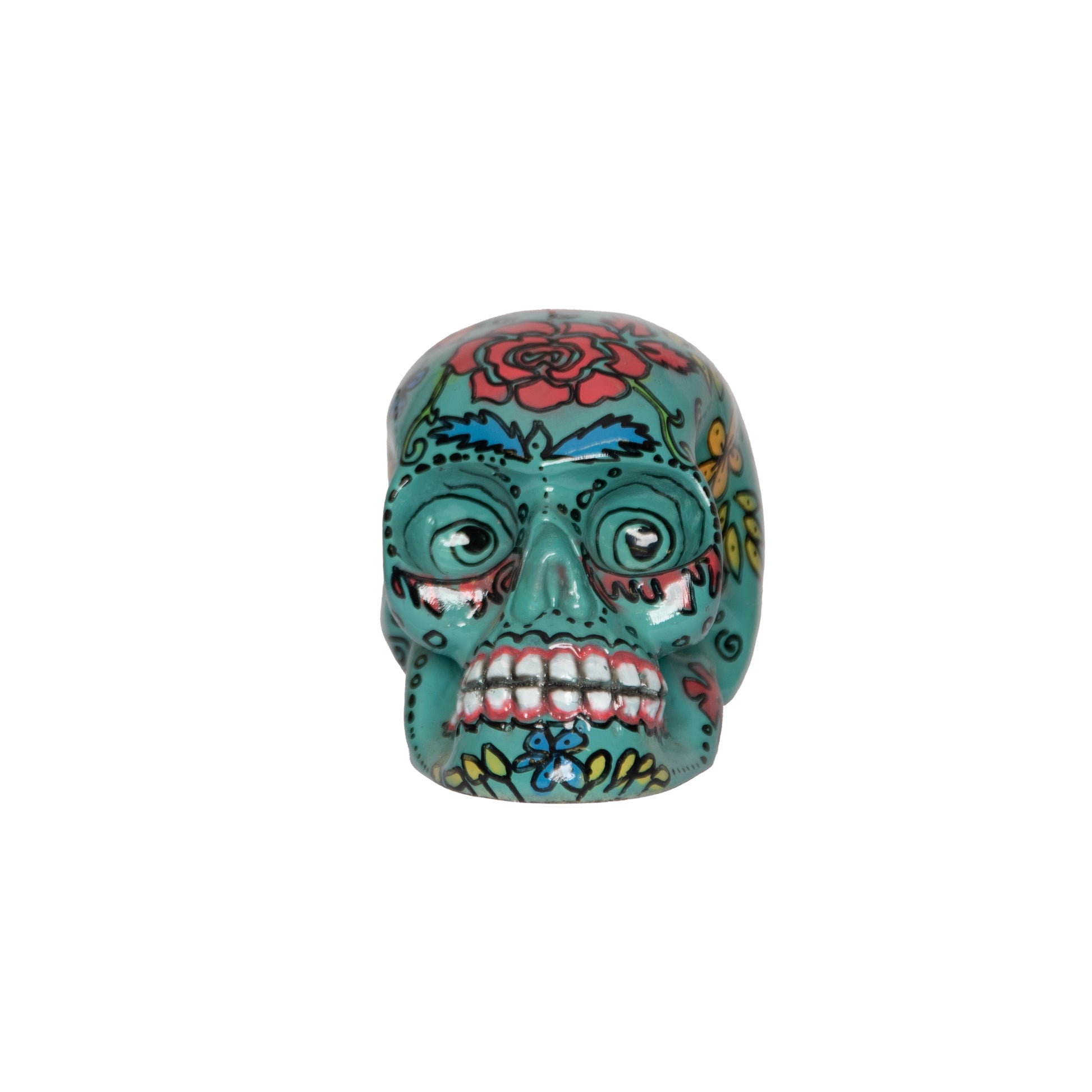 I teschi Calaveras sono decorazioni tipiche che evocano l'estetica del Día de los Muertos. Questi teschi sono realizzati in resina, un materiale leggero e resistente, e spesso presentano disegni vivaci e dettagli intricati.