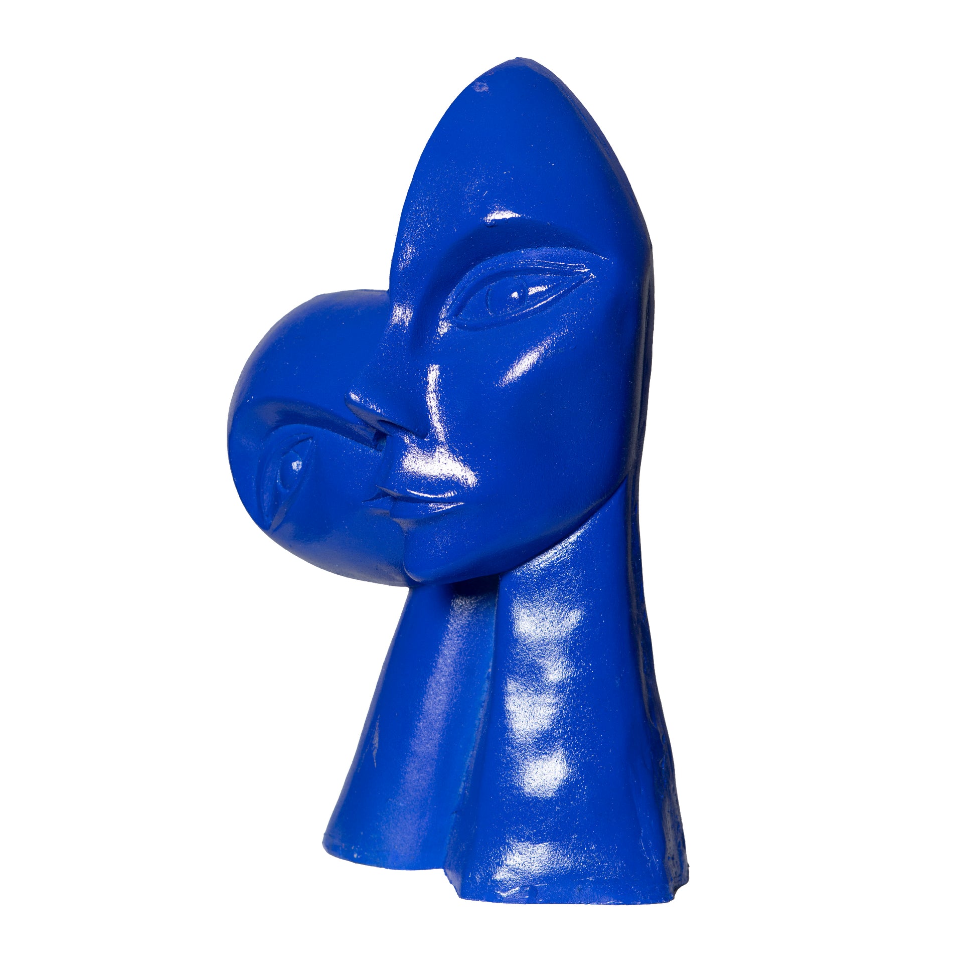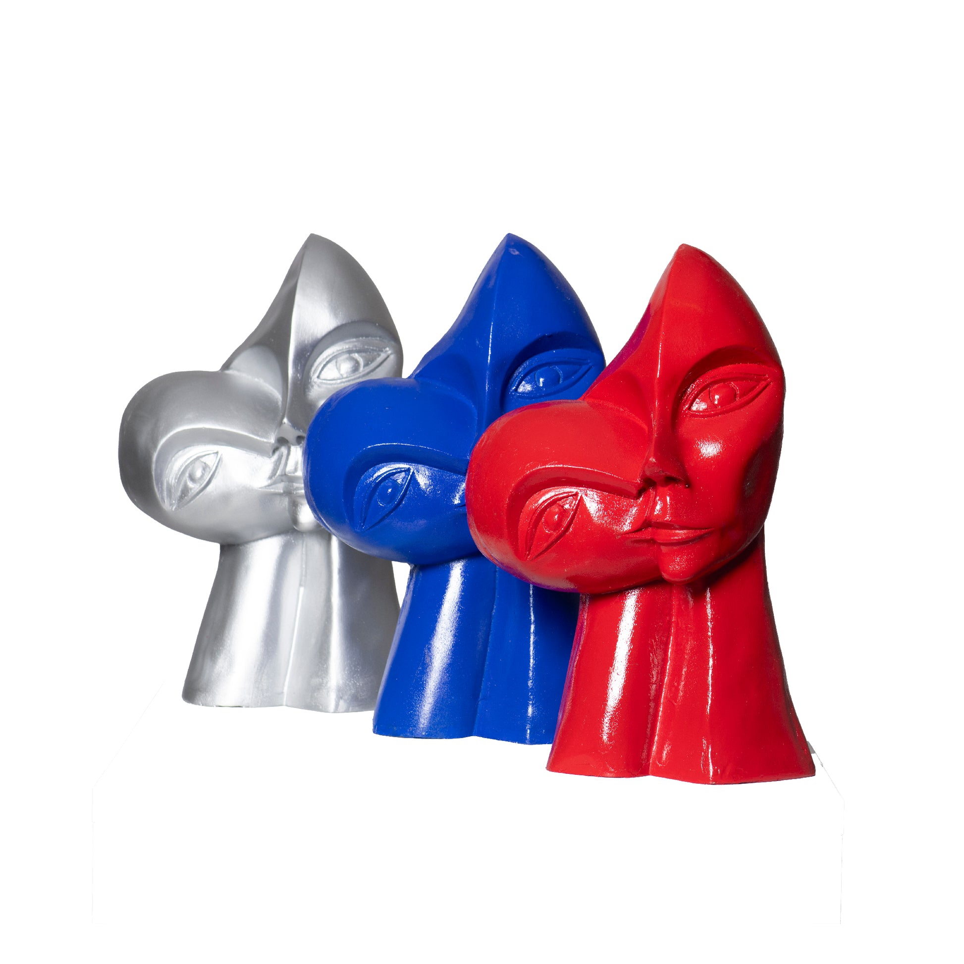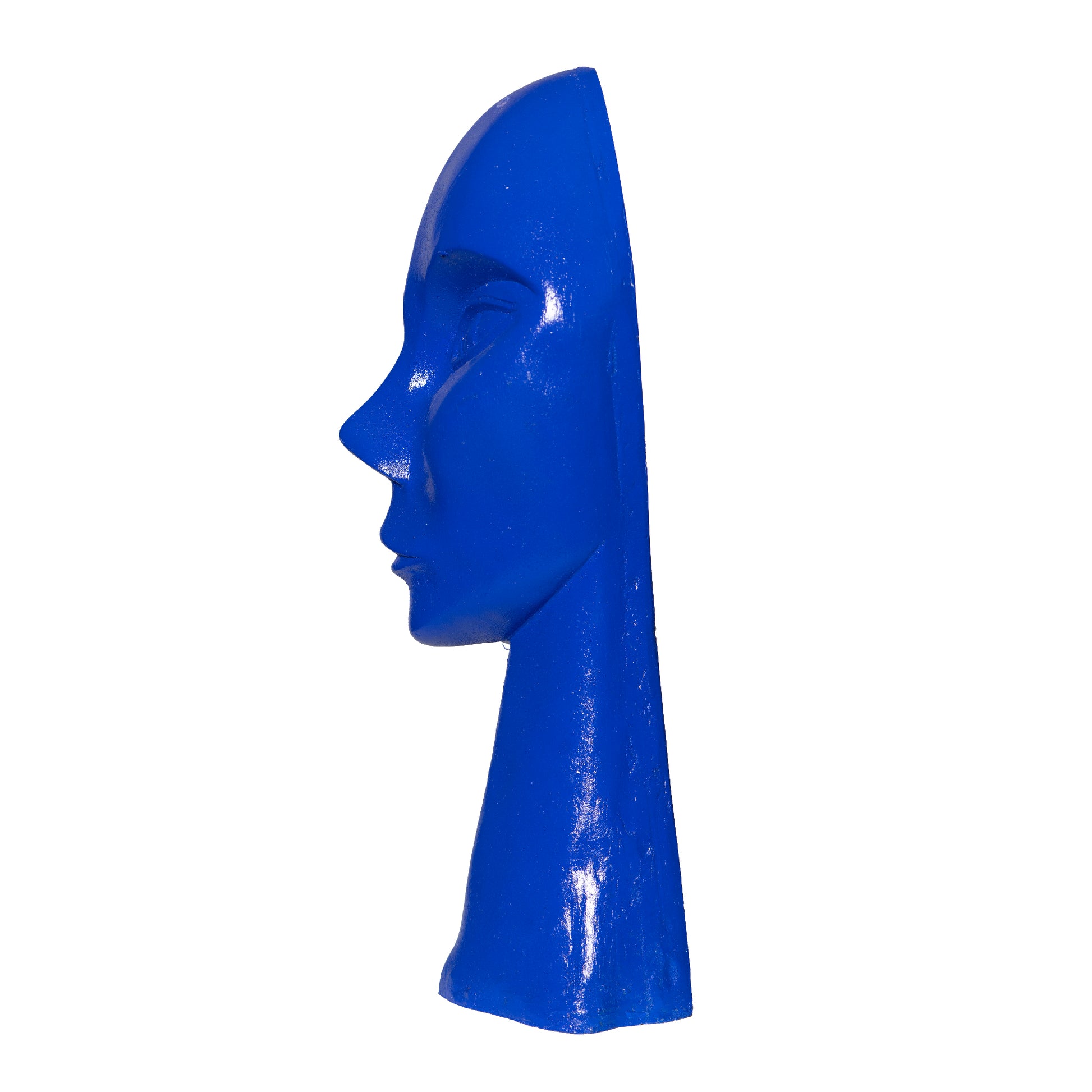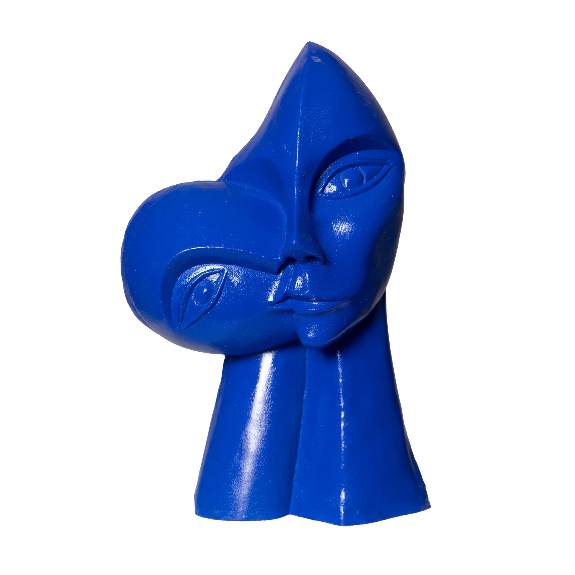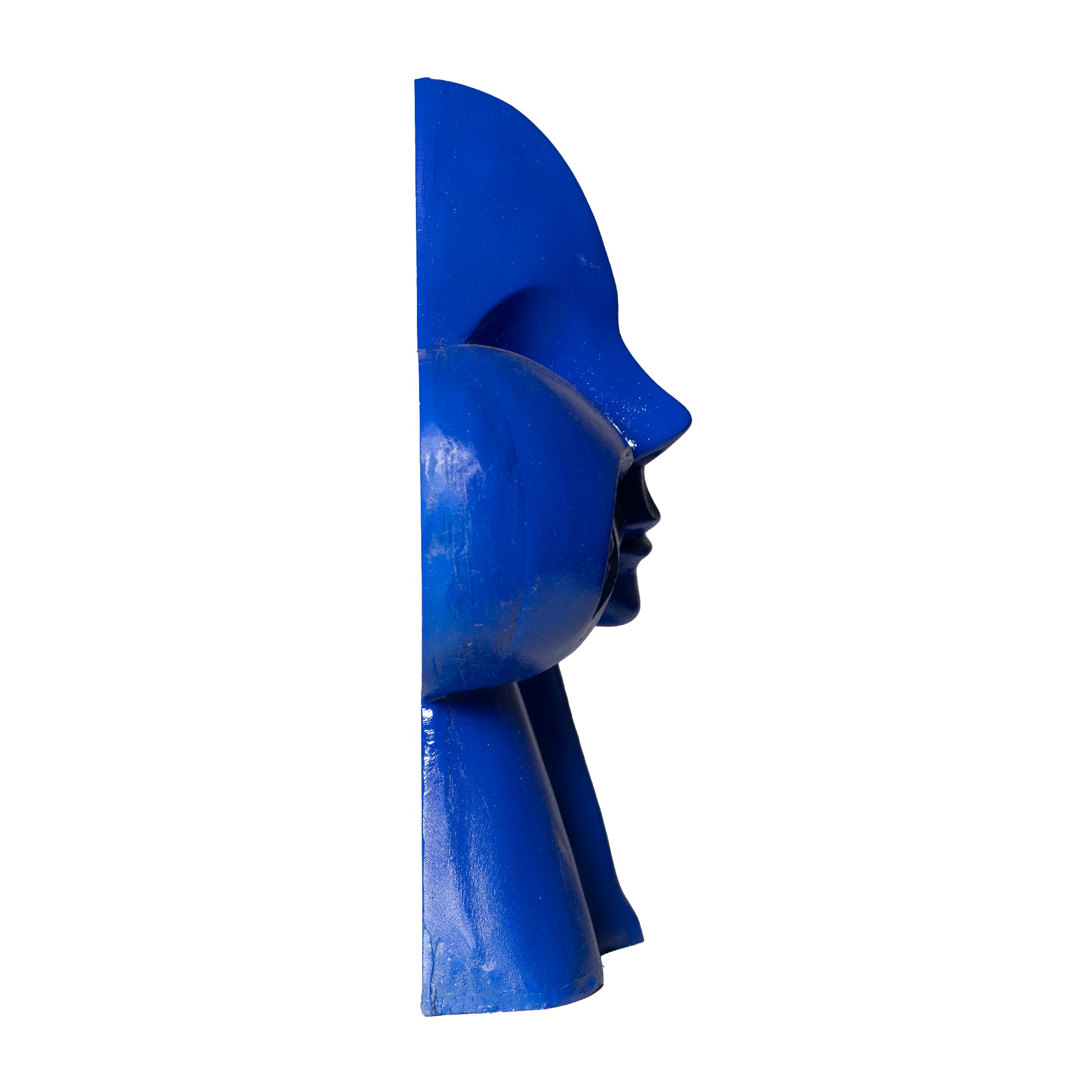 Volti inglobati in resina che formano una scultura contemporanea e intrigante, dove le linee del viso sono semplificate ed essenziali, quasi astratte.